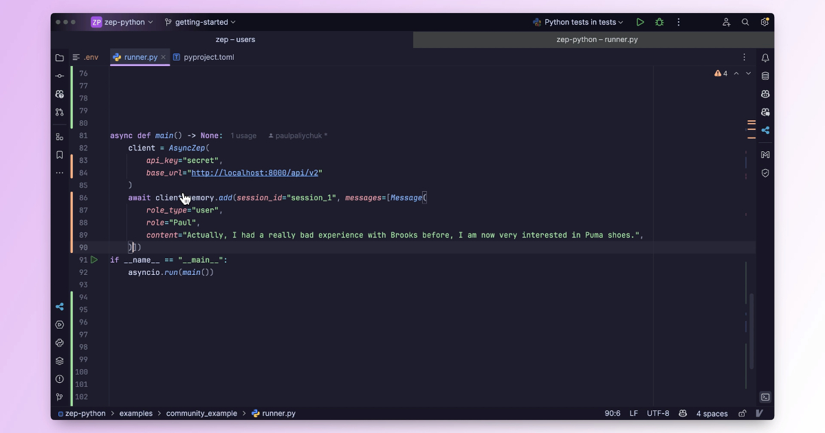 A memory layer for AI agents that continuously learns facts from user interactions and changing business data.
